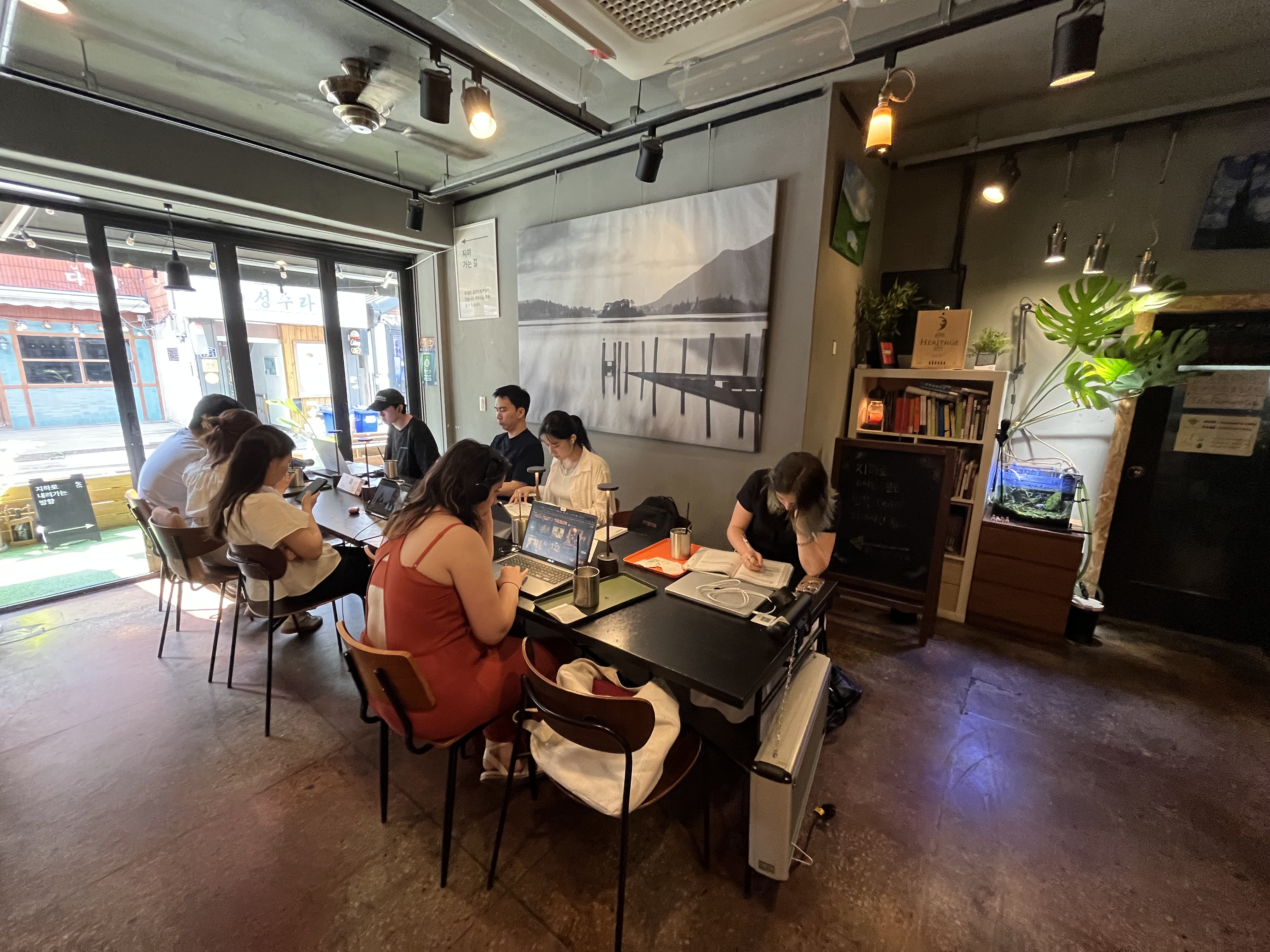 λ€μ΄μμλ§μ λ ΈνΈλΆμ νΌμΉ μ¬λλ€μ΄ 빼곑ν μμμλ λͺ¨μ΅μ΄ μΈμμ μ΄μμ΄μ. λ§μΉ λμκ΄ κ°κΈ°λ νκ³ μ. μ΅κ·Ό βλ°λ λλΈλ§(body doubling)βμ΄λΌλ κ°λ μ μκ² λλλ°, μμ λ€λ₯Έ μ¬λμ΄ μμ΄λ κ°μ ν μΌμ μ§μ€νλ©΄ μμ ν¨μ¨μ΄ λμμ§λ€κ³ νλλΌκ³ μ. μΉ΄νμ μ λΉν μμ(λ°±μ μμ) λλΆμ μ§μ€λ ₯μ΄ μ¬λΌκ°λ€λ μ°κ΅¬ κ²°κ³Όλ μλμ.